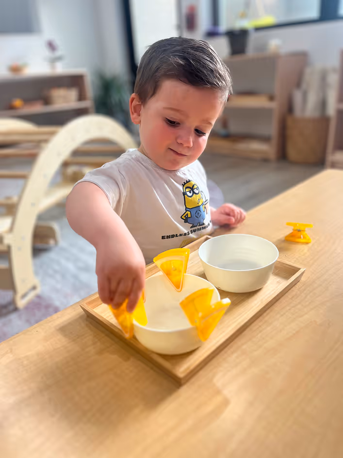 Designed for movement, exploration, and hands-on engagement, our toddler classroom is equipped with developmentally appropriate Montessori materials. Toddlers are guided to care for themselves and their surroundings, develop language and motor skills, and begin social interactions in a nurturing, structured space.